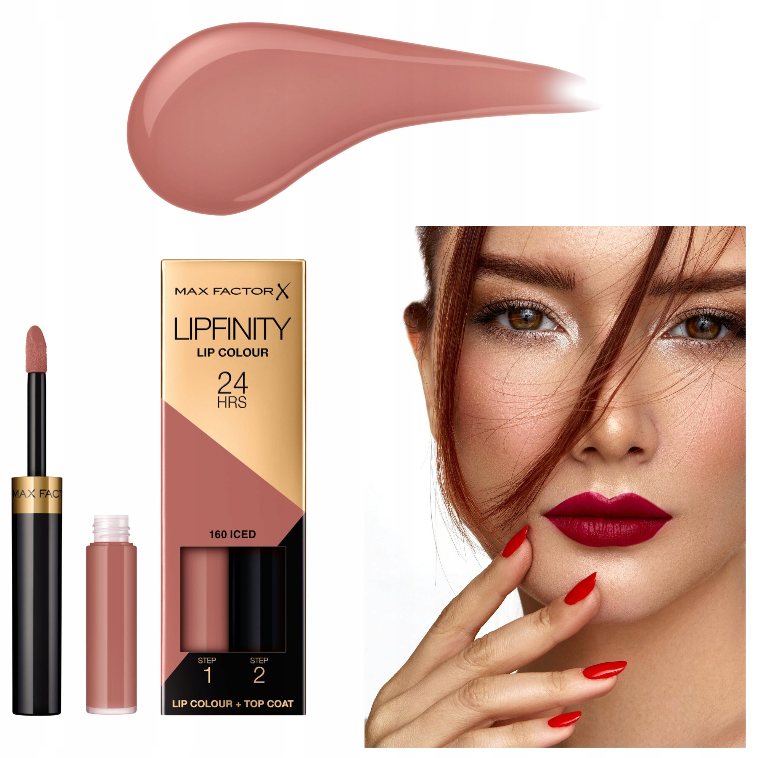Max Factor Lipfinity 24H Trwała Pomadka Do Ust + Top Coat Róż Nude 160 Iced – piękno i świeżość przez cały dzień